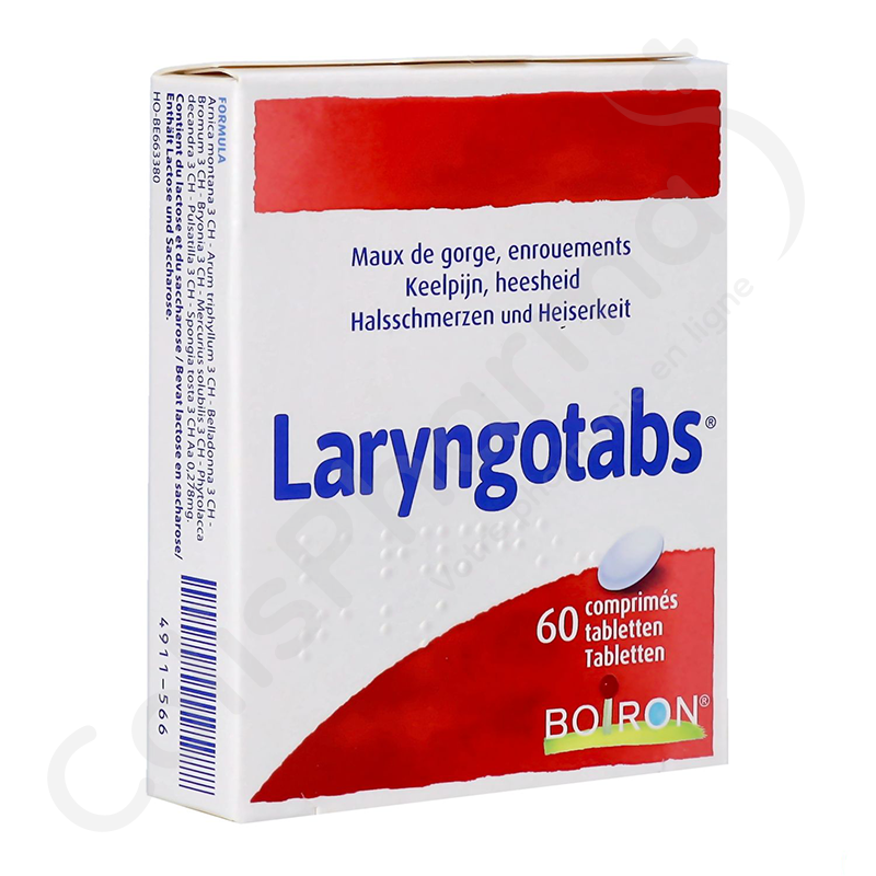 Médicament homéopathique contenant des ingrédients traditionnellement utilisés dans le traitement des maux de gorge ou des symptômes laryngés tels que l'enrouement.