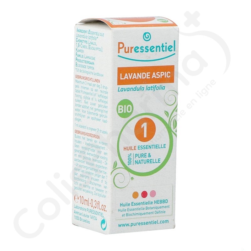 Puressentiel Huile Essentielle Lavande Aspic Bio est un produit 100% naturel et pur. Cette huile essentielle de lavande aspic a une odeur très forte et moins suave que l'huile essentielle de lavande vraie.