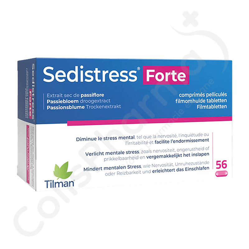 Sedistress Forte est un médicament traditionnel à base de plantes contenant de l’extrait de passiflore. Sedistress Forte est utilisé chez les adultes et les adolescents de plus de 12 ans pour diminuer les symptômes modérés du stress mental, tel que la nervosité, l’inquiétude ou l’irritabilité, ainsi que pour faciliter l’endormissement.