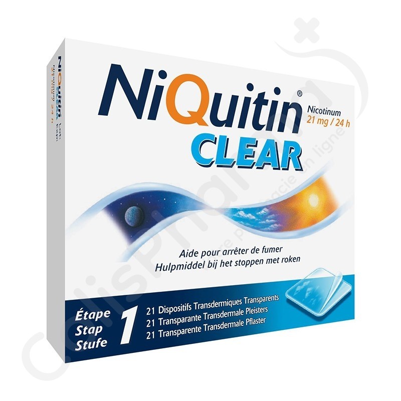 NiQuitin Clear est un médicament à la nicotine utilisé pour aider les fumeurs à s'arrêter de fumer. Il faut absolument arrêter de fumer dès le début du traitement.