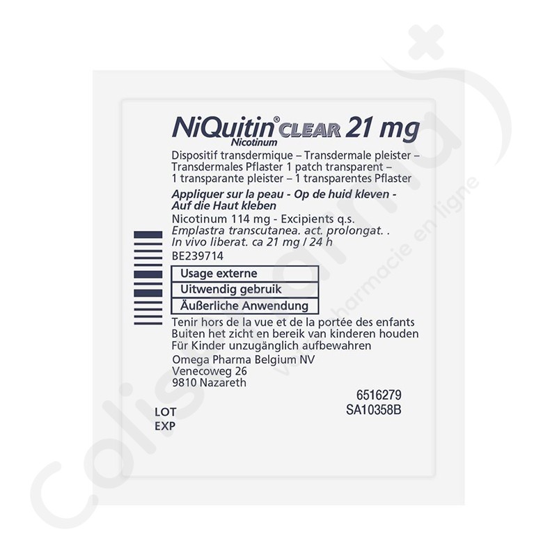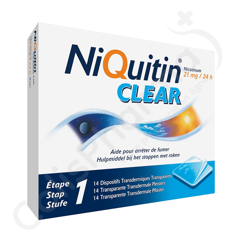 NiQuitin Clear est un médicament à la nicotine utilisé pour aider les fumeurs à s'arrêter de fumer. Il faut absolument arrêter de fumer dès le début du traitement.
