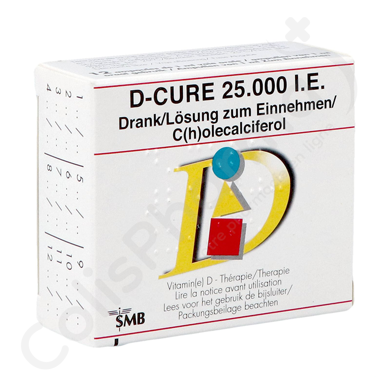 D-Cure est un médicament destiné à prévenir ou traiter les carences en vitamine D. La très haute concentration en Cholécalciférol (Vitamine D3) des ampoules D-cure est suffisante pour prévenir les carences en vitamine D pendant plusieurs semaines.