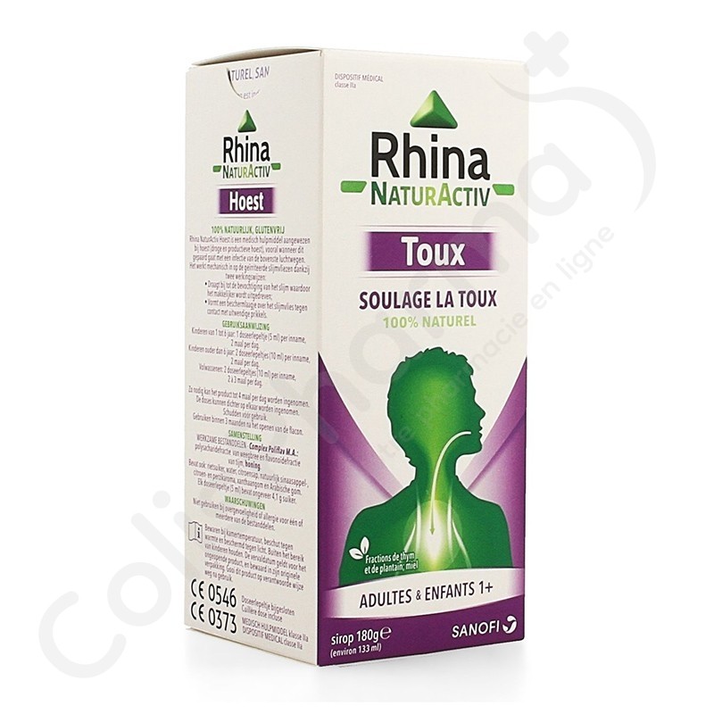 Rhina NaturActiv Toux est un sirop pour la toux. Il est utilisé particulièrement lorsque la toux est associée à une infection des voies respiratoires supérieures.