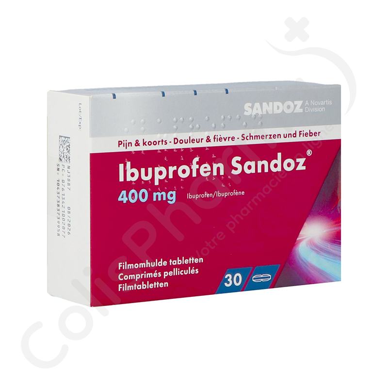 Ibuprofen Sandoz 400 mg comprimés pelliculés est indiqué pour le traitement symptomatique et de courte durée des douleurs légères à modérées, comme des maux de tête, la migraine aiguë avec ou sans aura, des maux de dents, des douleurs menstruelles, de la fièvre et des douleurs accompagnant le rhume.