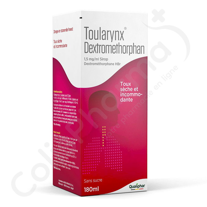 Conseils d'utilisation de Toularynx Dextromethorphan Posologie Adultes et enfants à partir de 12 ans : 10 ml, 4 à 6 fois par jour; Enfants de 6 à 12 ans : 10 ml, 2 à 3 fois par jour; Déconseillé aux enfants de moins de 6 ans. Utilisation Ce sirop ne contient pas de sucre et peut donc être pris sans problème par les personnes diabétiques. Contient un godet doseur gradué de 30 ml. Le flacon est fermé par une fermeture de sécurité enfant. Toutes les indications et contre-indications se trouvent dans la notice disponible dans l'onglet "Propriétés"