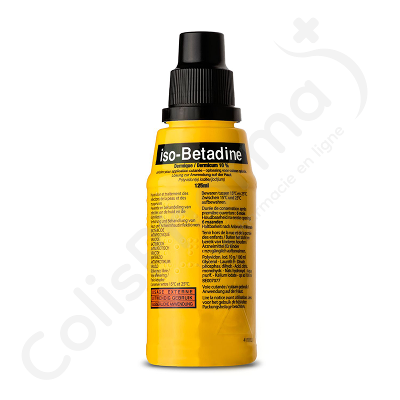 Iso-Betadine Dermique est une préparation pour désinfecter la peau et les muqueuses. Contient de l'iode (sous forme de polyvidone iodée), un antiseptique qui tue les microbes (bactéries, virus, champignons) et qui prévient les infections.