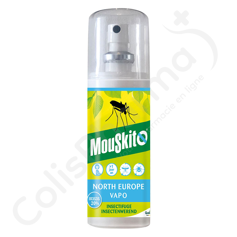 Mouskito North Europe Vapo est un insectifuge. Il vous protège pendant 8 heures contre les moustiques et 12 heures contre les tiques, uniquement dans des zones tempérées.