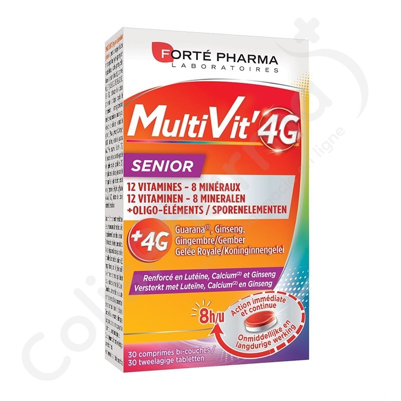 Pour couvrir les besoins quotidiens en vitamines, minéraux et oligo-éléments, MultiVit' 4G Senior est une multivitamine bi-couche à libération prolongée pour booster l'immunité. MultiVit' 4G Senior possède une formule très complète qui associe :