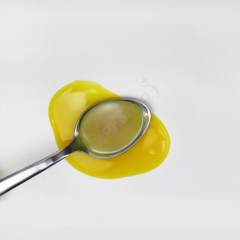 MultiVit'Kids est une solution buvable au goût de pêche, convient également aux adultes ayant par exemple des difficultés de déglutition.