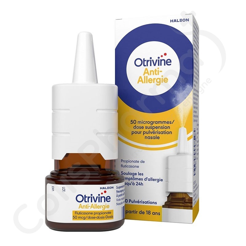 Otrivine Anti-Allergie contient du propionate de fluticasone, un corticostéroïde qui, lorsqu’il est utilisé tous les jours, soulage les symptômes allergiques. Ce médicament aide à contrôler les réactions de votre corps contre les allergènes (« déclencheurs ») présents dans l’environnement. Otrivine Anti-Allergie est utilisé dans le traitement des symptômes allergiques dus au rhume des foins et autres allergènes aéroportés tels que les allergies aux animaux de compagnie, aux acariens et aux spores de moisissures. Il soulage les symptômes tels que les éternuements, les démangeaisons et le larmoiement des yeux, le nez qui coule, bouché ou irrité, jusqu'à 24h.