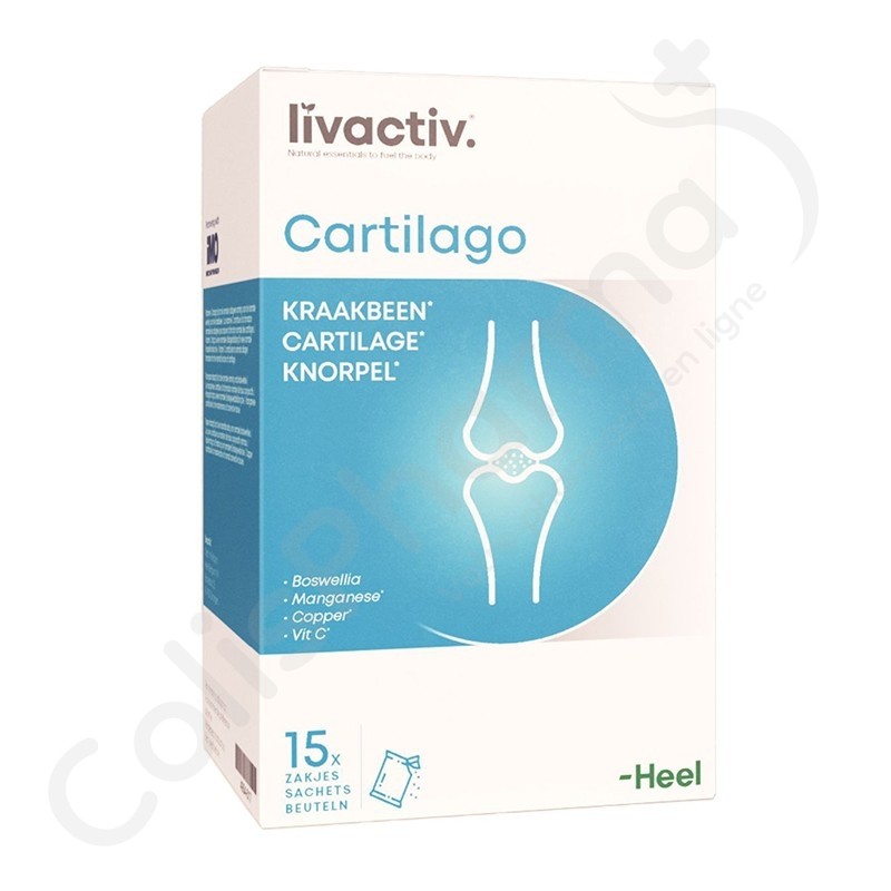 Livactiv Cartilago est une formule complète qui combine des ingrédients tels que le collagène, la glucosamine, la chondroïtine et l’acide hyaluronique, enrichie d’extraits végétaux comme le Boswellia serrata et l’acérola, ainsi que de minéraux essentiels, notamment le manganèse, le cuivre, le magnésium et le zinc. Ces composants agissent en synergie pour optimiser leur efficacité, renforcer leurs bienfaits respectifs et favoriser une absorption optimale par l’organisme. Ce complément alimentaire contribue à maintenir des cartilages en bonne santé¹ et à préserver la souplesse musculaire². Opter pour Livactiv Cartilago, c’est choisir une liberté de mouvement retrouvée !