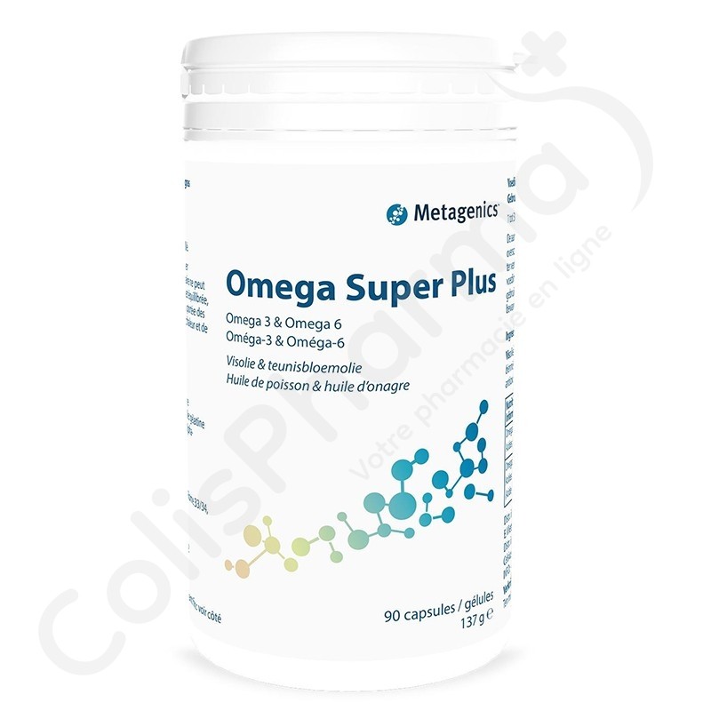 Omega Super Plus contient des oméga-3 et 6 ainsi que de l'huile de poisson et d'onagre qui soutiennent le cœur, les vaisseaux sanguins et le fonctionnement cognitif.