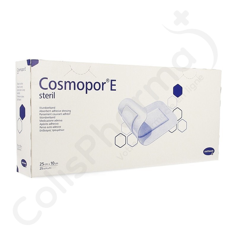 Cosmopor E offre un confort de port optimal grâce à sa surface souple. Le produit est perméable à l'air et l'humidité, ce qui permet à la peau de fonctionner normalement. Le caoutchouc synthétique maintient sûrement le pansement en place. Les coins arrondis empêchent le recroquevillement et le décollement du pansement. Le bord adhésif de Cosmopor E enferme soigneusement la plaie.