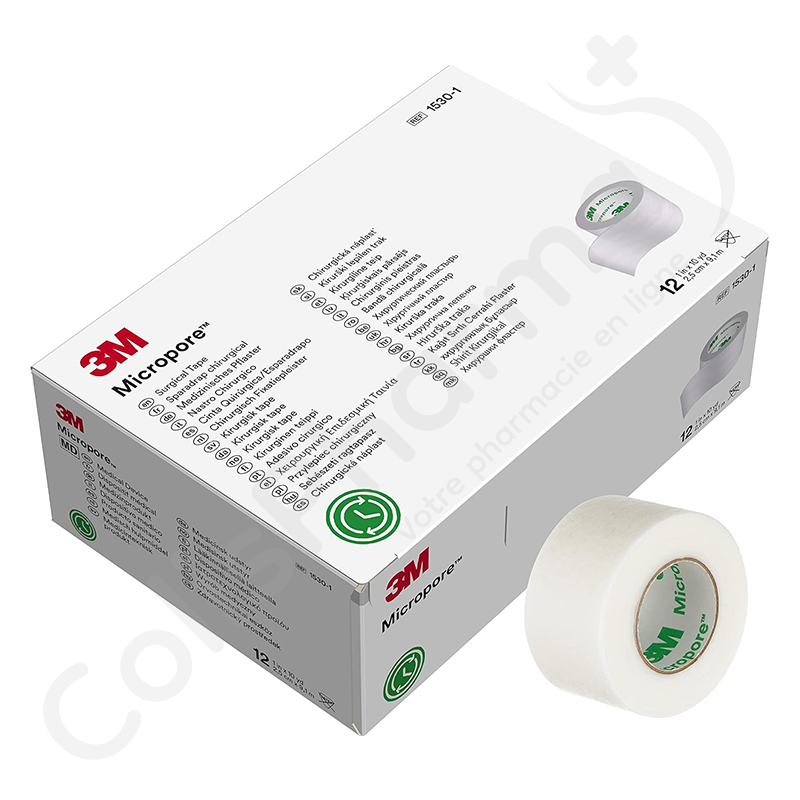 Micropore est un sparadrap composé d'un support non tissé en fibres de rayonne et d'une couche adhésive de copolymères d'acrylate évitant ainsi toute irritation de la peau.