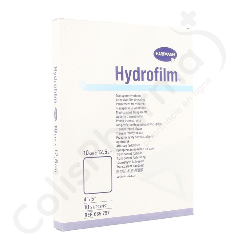 Pour la protection de plaies sèches avec cicatrisation primaire et des lésions épithéliales presque cicatrisées, contre les infections secondaires et les irritations mécaniques ; pour la fixation de cathéters et de canules. Idéal pour la couverture de compresses d’alginate de calcium formant un gel comme Sorbalgon sur des plaies superficielles exsudatives. Ne pas appliquer directement sur des plaies avec infection clinique, saignantes ou fortement exsudatives. Hydrofilm est utilisé comme couverture de plaie afin de réduire le risque d’une infection secondaire et pour protéger les plaies sèches avec cicatrisation primaire et les lésions épithéliales presque cicatrisées contre les lésions physiques ; pour la fixation de cathéters ou de canules ; idéal comme pansement secondaire, p. ex. pour recouvrir des pansements d’alginate de calcium formant un gel.