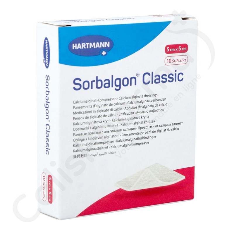 Fiche technique - Sorbalgon 5 x 5 cm - 10 compresses