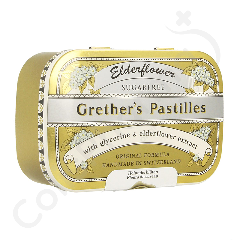 Grether's Pastilles Elderflower sans sucre – une saveur fruitée acidulée aux extraits de fleur de sureau et de mélisse citronnelle. Associés à du jus de pommes naturel, les ingrédients assurent une expérience gustative printanière.
