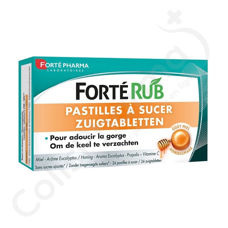 Ces actifs combinés à la vitamine C et à l'arôme d'eucalyptus, font de Fortérub Pastilles à sucer l'alternative naturelle pour apaiser la gorge !