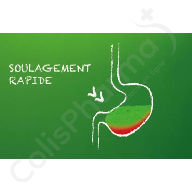 Neutralise rapidement: les carbonates de calcium et de magnésium neutralisent rapidement l'excès d'acide gastrique, ce qui permet de soulager rapidement les symptômes aigus tels que les brûlures d'estomac et le reflux acide.