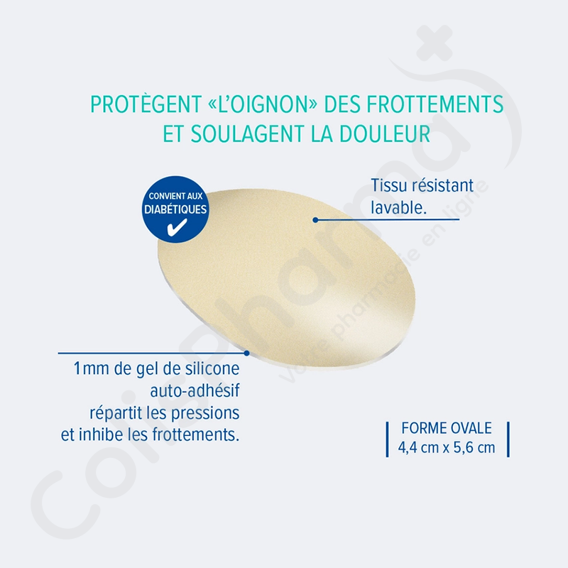 Les protège-oignons au pied sont lavables à la main (sans frotter) à l’eau et au savon. Laisser sécher naturellement. Jeter et remplacer le dispositif dès l’apparition de fissures dans le gel ou de dégradation du tissu.
