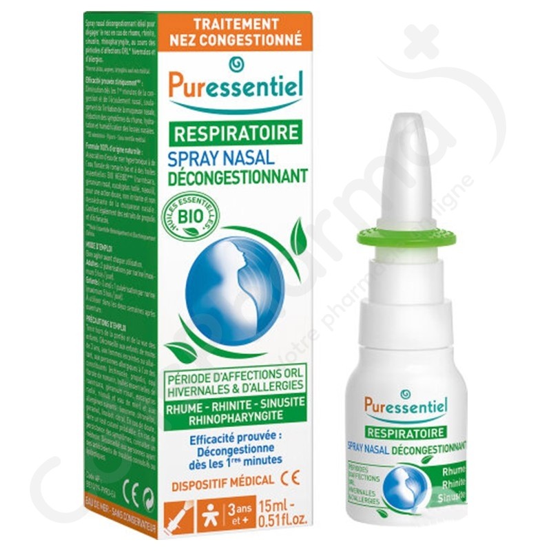 Ce Spray Nasal Décongestionnant aux Huiles Essentielles Bio Puressentiel est idéal pour dégager le nez en cas de rhume, rhinite, sinusite, rhinopharyngite, au cours des périodes d’affections ORL hivernales et d'allergies.