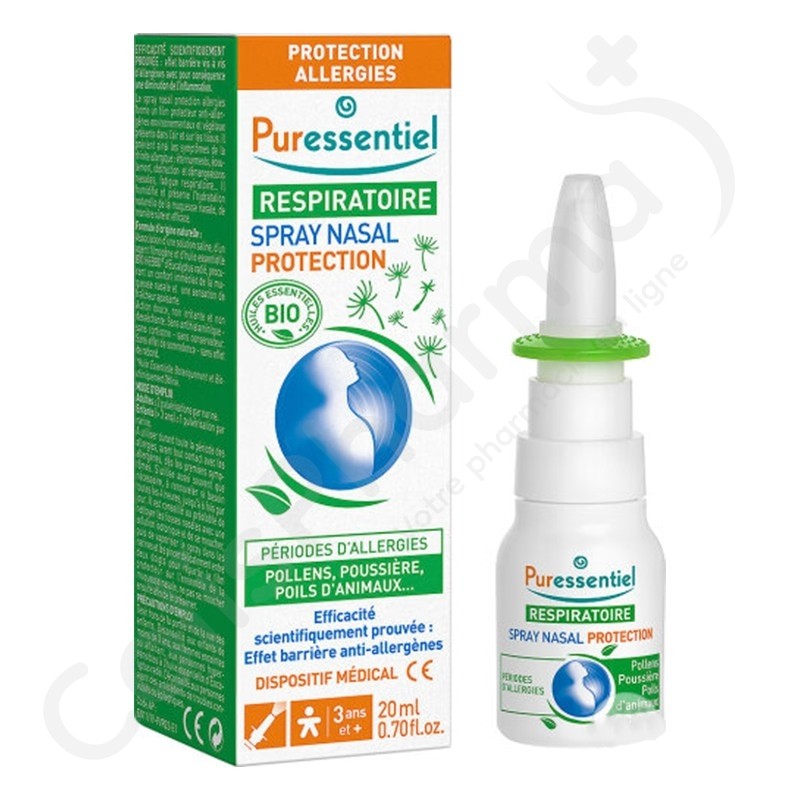 Le spray nasal protection allergies Puressentiel, avec sa formule d'origine naturelle, forme un film protecteur anti-allergènes environnementaux et végétaux présents dans l’air et sur les tissus.