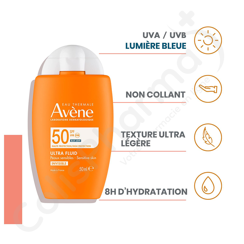 Ultra Fluid INVISIBLE SPF50 offre une haute protection quotidienne contre les UVB, les UVA et la lumière bleue HEV pour prévenir le photovieillissement.