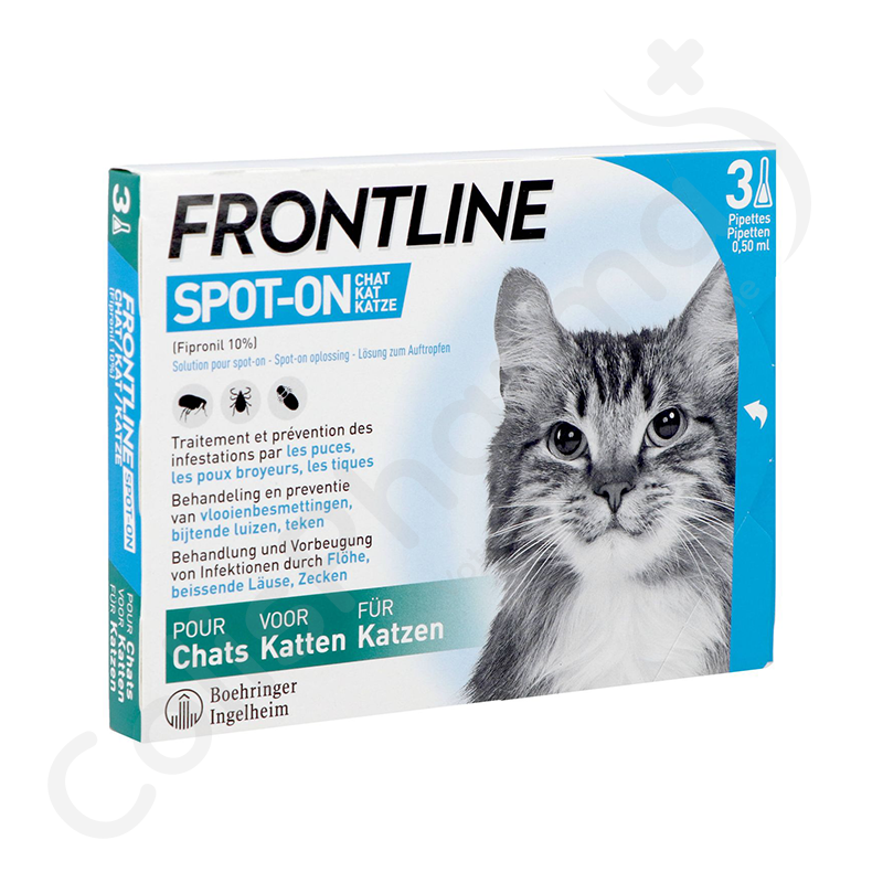 Frontline Spot-On est un produit facile à appliquer qui procure à votre chat une bonne protection contre les puces, les tiques et les poux. Frontline Spot-On tue les puces en 24h et les tiques en 48h. Protège votre chat pendant 4 semaines contre les puces et 2 semaines contre les tiques.