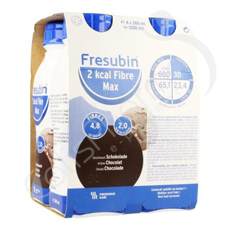 Fresubin 2kcal Fibre Max Chocolat est un aliment diététique destiné à des fins médicales spéciales pour supplémentation orale. Fresubin 2kcal Fibre Max Chocolat peut être administré pour des patients ayant des besoins élevés en énergie et en protéines et/ou avec restriction hydrique chez qui une alimentation avec fibres est recommandée.