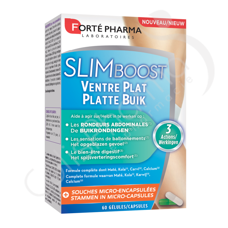 Forte Pharma SlimBoost Ventre Plat vous offre une formule ultra complète qui vous aide à diminuer les rondeurs abdominales, en cas de sensations de ballonnements et favorise le confort intestinal.