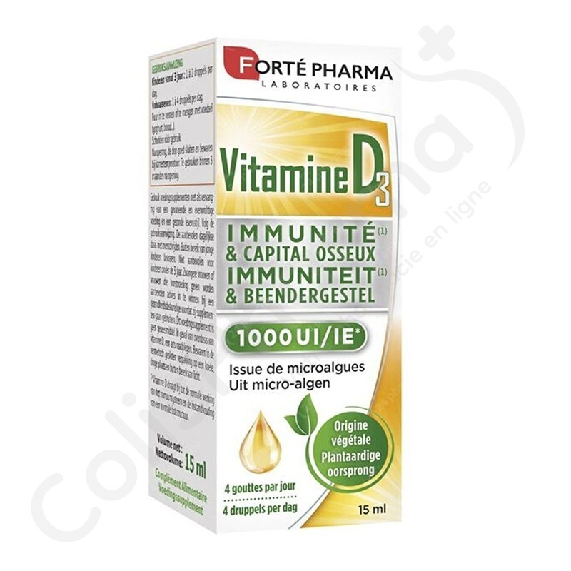 Afin de renforcer vos défenses naturelles et votre santé osseuse, les laboratoires Forté Pharma ont développé Vitamine D3 1000 UI, de la vitamine D3 d'origine naturelle et végétale issue de micro-algues pour un usage quotidien.