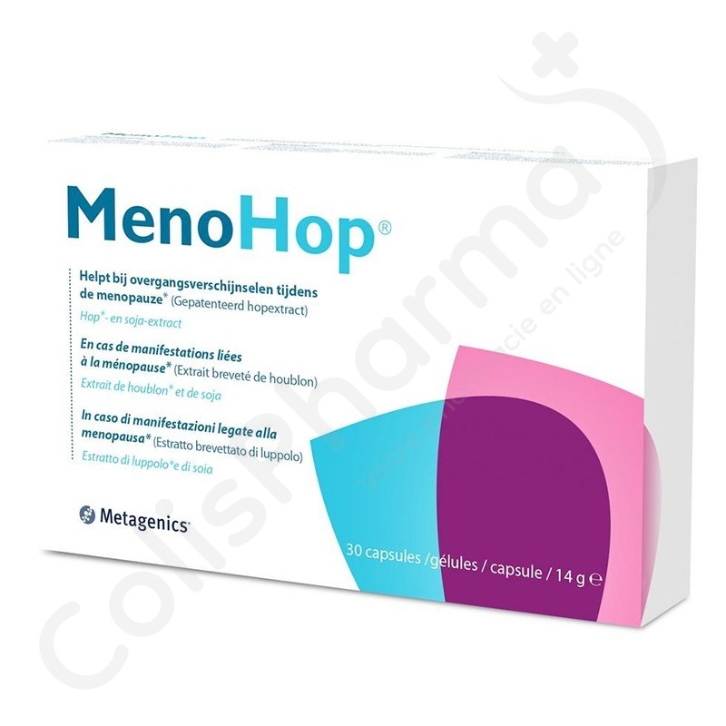 MenoHop contient du Humulus Lupulus qui aide en cas de symptômes de la transition lors de la ménopause. L'action synergique de la hopéine et des isoflavones aide les femmes à supporter et à minimiser les désagréments à court terme comme les bouffées de chaleur, l’irritabilité et l’anxiété.