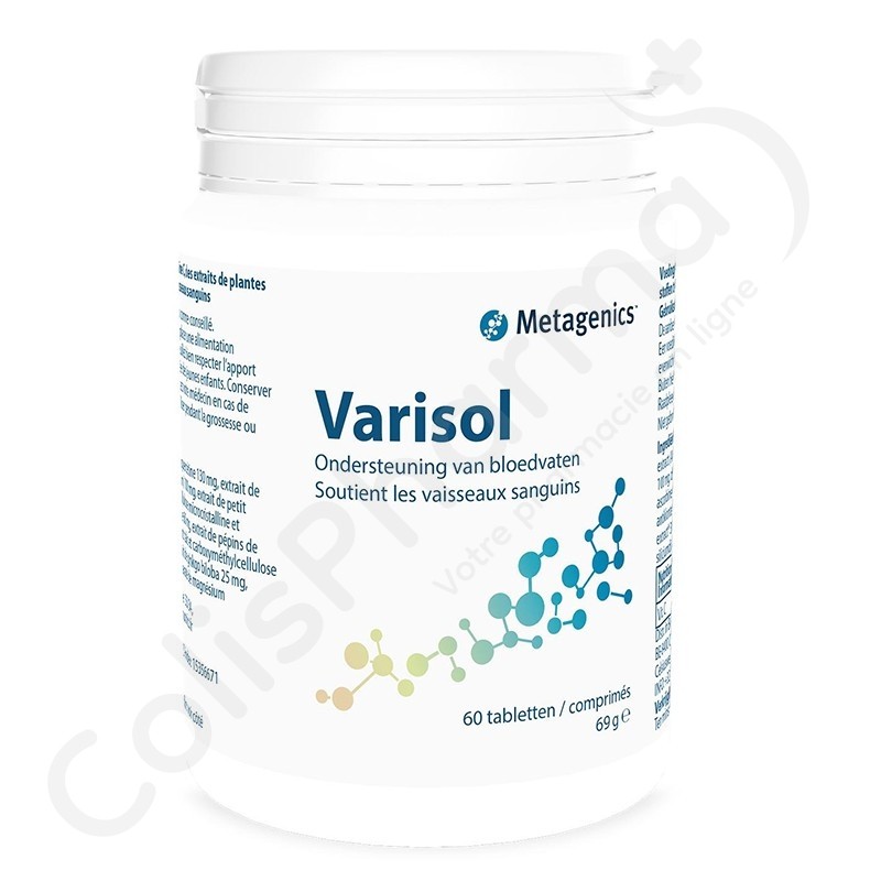 Varisol contient de l'extrait de marronnier d'Inde permettant de soutenir les vaisseaux sanguins. Varisol aide à maintenir une bonne circulation dans les jambes : utile dans le cas de jambes lourdes, et protège le tissu conjonctif dans les vaisseaux sanguins et la peau.