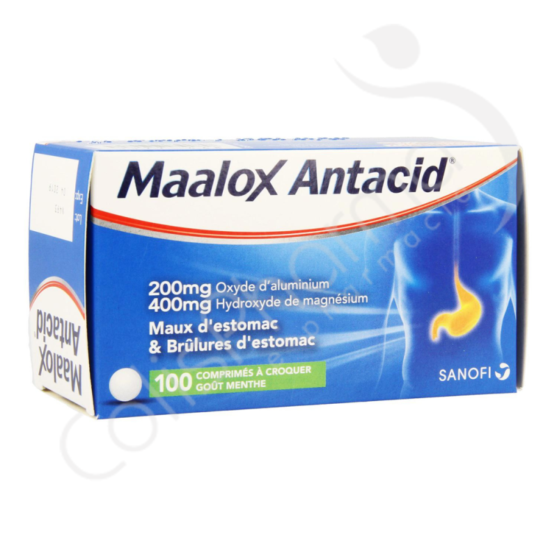 Maalox Antacid est un médicament à base d'hydroxyde d'aluminium (oxyde d'aluminium hydraté) et d'hydroxyde de magnésium, il est indiqué pour le traitement symptomatique de l'acidité gastrique et des douleurs gastriques à court terme.