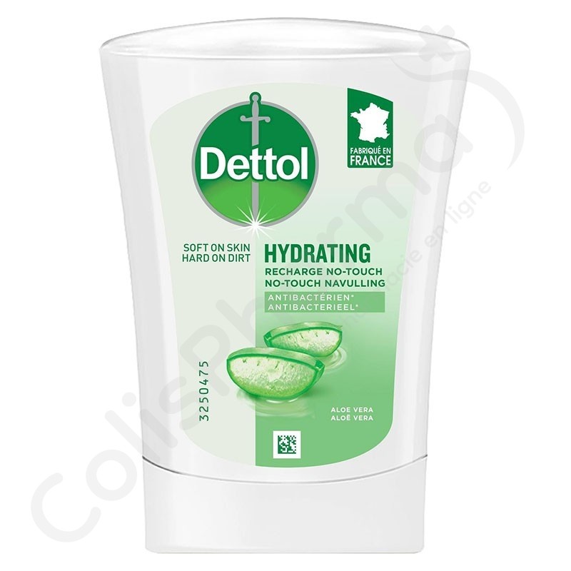 La recharge de savon antibactérien pour les mains Dettol No-Touch Aloe Vera convient au distributeur automatique de savon No-Touch. Le savon à main Dettol No-Touch Aloe Vera est hygiénique. Vous pouvez facilement vous laver les mains sans toucher la pompe. Cela permet d'éviter la propagation des bactéries. Grâce à un capteur, le distributeur dose automatiquement la quantité de savon dont vous avez besoin lorsque vous vous lavez les mains. Utilisez le gel lavant avant ou après les repas, après avoir utilisé les toilettes ou après avoir jardiné par exemple. Le savon a un parfum frais et agréable et est testé dermatologiquement.