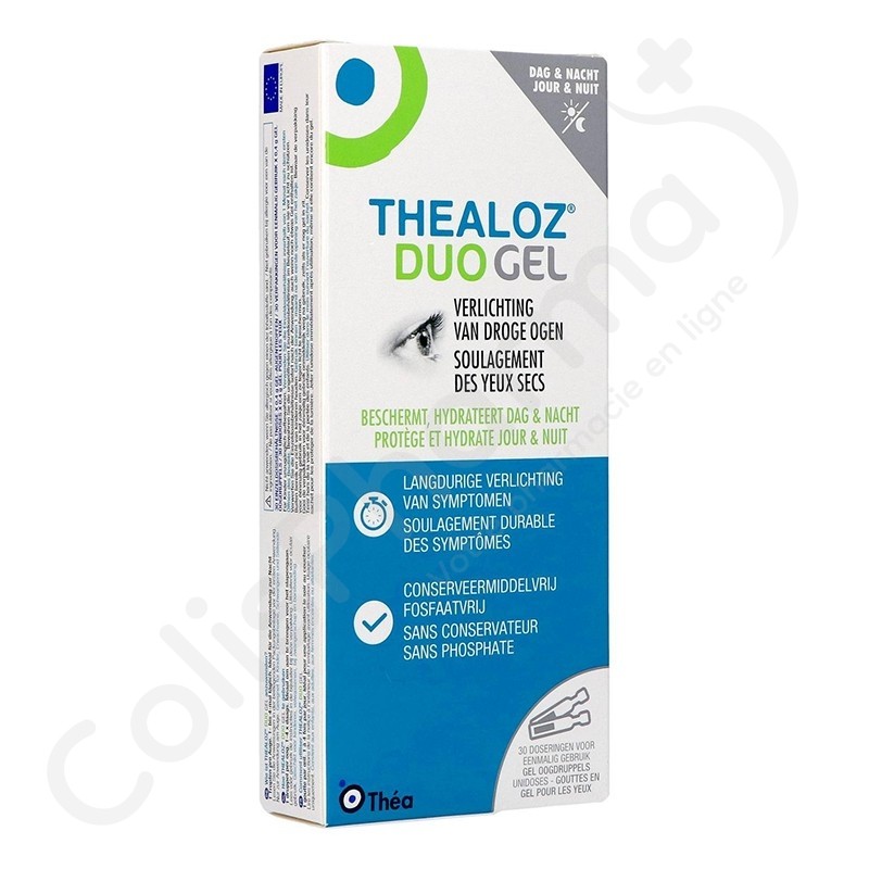 Thealoz Duo Gel est un gel fluide ayant pour but la protection, l'hydratation et la lubrification de la surface oculaire indiquée pour le traitement du syndrome de l'œil sec modéré à sévère. Il agit sur une longue durée, avec un maximum de confort.
