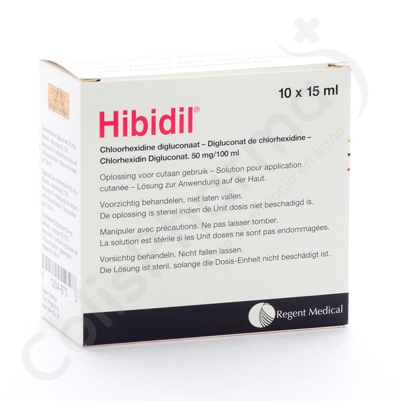 Hibidil est une solution désinfectante, aqueuse, aseptique, de couleur rouge, prête à l'emploi. La solution doit être appliquée non diluée sur l'endroit à traiter.