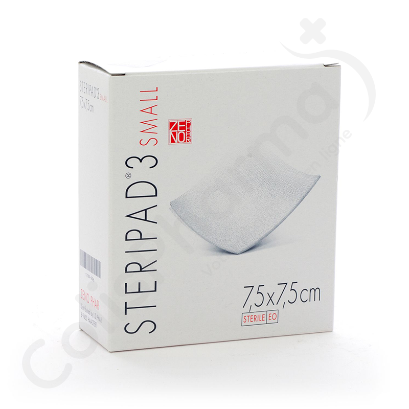 Dans Steripad 1 Small, on retrouve 20 compresses stériles de 7,5cm x 7,5cm qui sont emballées séparément.