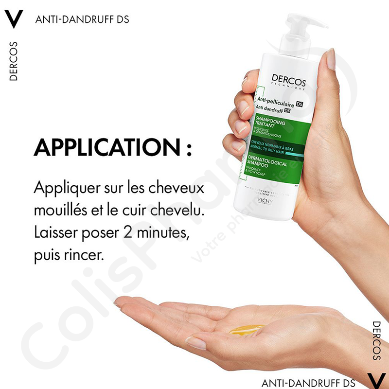 Vichy Dercos Shampooing Anti-Pelliculaire & Démangeaisons agit sur les pellicules tout en soignant les cheveux normaux à gras. Dès la première utilisation, ce shampoing traite les pellicules visibles et prévient la rechute, pour un contrôle et un confort durables.