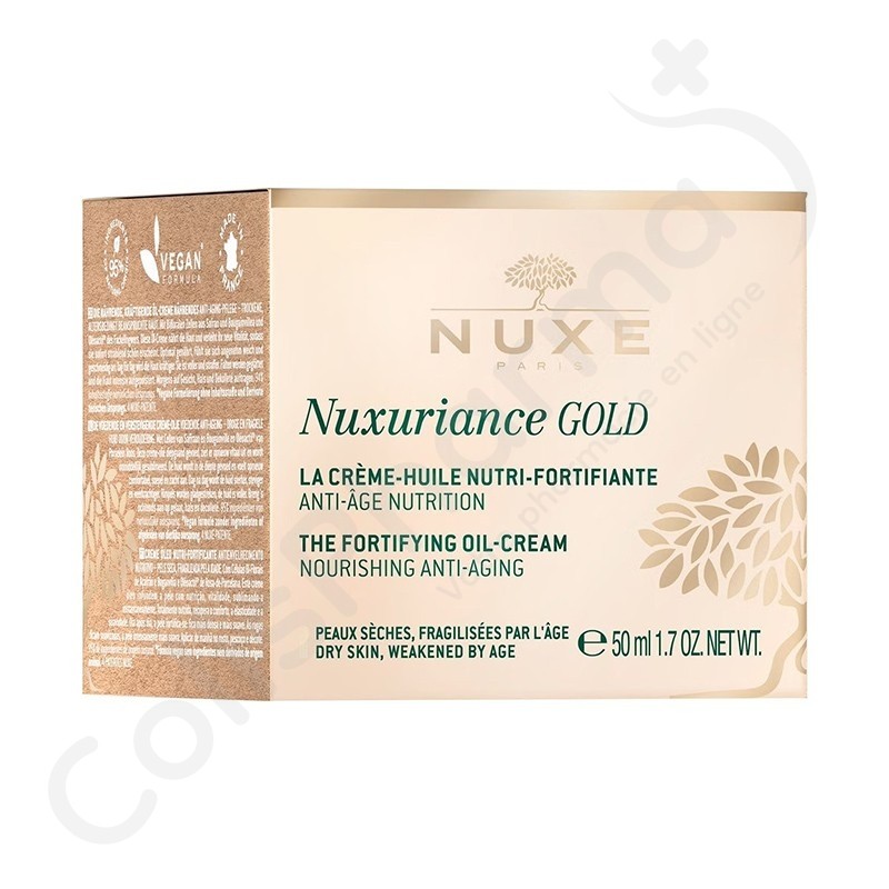 Nuxe Nuxuriance Gold - Crème-Huile Nutri-Fortifiante associe le pouvoir des Cellules Bi-Florales de Safran et Bougainvillier, l'Oléactif de Rose de Porcelaine et un complexe naturel nutri-reconstituant pour un pouvoir anti-âge absolu.