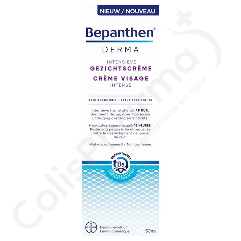 Bepanthen Derma Crème Hydratante Visage est riche en lipides naturels, elle hydrate la peau très sèche et la protège du dessèchement jusqu'à 48 heures. La peau est douce et souple. La crème visage intense aide à renforcer la barrière cutanée pour une protection quotidienne des peaux sèches et sensibles. Le complexe réparateur contribue à restaurer la barrière cutanée pour prévenir la peau sèche récurrente. Profitez d'un soulagement immédiat grâce à sa composition riche, non grasse et respectueuse de la peau. Une combinaison spéciale d'ingrédients qui pénètrent plus profondément dans la peau en agissant sur la cause de la sécheresse et en la réparant "de l'intérieur".