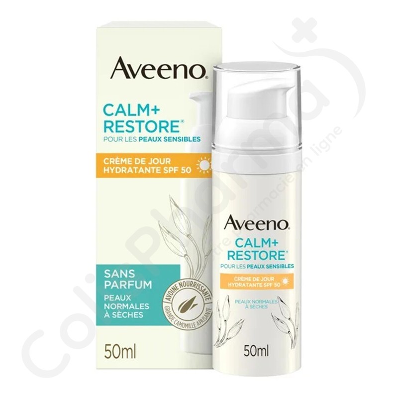 Protégez et prenez soin de votre peau chaque jour avec la nouvelle Crème Hydratante de Jour Aveeno CALM+RESTORE SPF 50. Cette formule cliniquement prouvée est spécialement conçue pour les peaux sensibles et offre une hydratation intensive, un apaisement ainsi qu’une protection contre les agressions extérieures. Sa texture légère, rapidement absorbée et non grasse contient de l’avoine nourrissante, dont il est cliniquement prouvé qu’elle calme la peau et maintient l’équilibre de la barrière d’hydratation cutanée. La grande camomille apaisante aide à calmer la peau sensible, tandis que l’acide hyaluronique retient l’humidité et renforce l’hydratation pour une peau saine et éclatante. La crème offre une protection à large spectre UVA/UVB (SPF 50) et aide à protéger la peau des dommages causés par les UV et autres facteurs externes. La formule est hypoallergénique, non comédogène et ne laisse aucune trace blanche. La nouvelle Crème Hydratante de Jour Aveeno CALM+RESTORE SPF 50 est testée dermatologiquement et idéale pour le soin quotidien des peaux normales à sèches et sensibles.