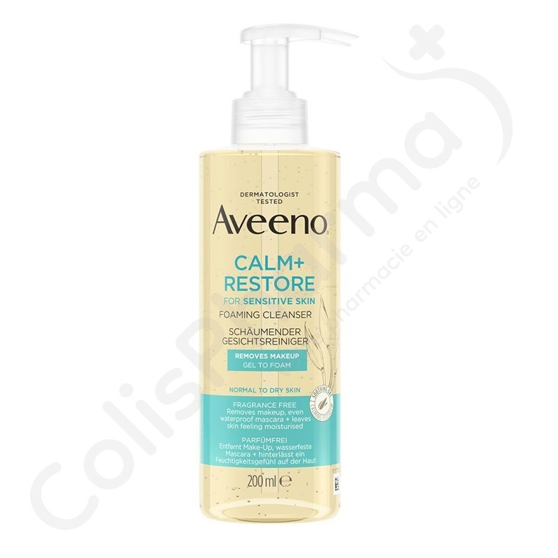Nettoyez votre peau en douceur et en profondeur avec le Nettoyant Moussant Aveeno Calm+Restore, spécialement conçu pour les peaux sensibles. Ce gel nettoyant moussant se transforme au contact de l'eau en une mousse légère et douce qui élimine efficacement le maquillage, les impuretés et l'excès de sébum, même le mascara waterproof. Sa formule est enrichie en avoine apaisante, en grande camomille et en acide hyaluronique, pour soutenir la barrière d’hydratation naturelle de la peau.