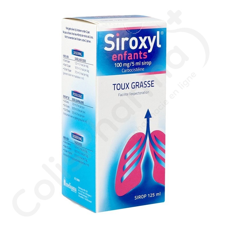 Siroxyl est un médicament à base de carbocystéine qui traite la toux grasse. La carbocystéine est proposée pour son effet fluidifiant des mucosités en cas d'affections respiratoires, accompagnées d'une toux productive.