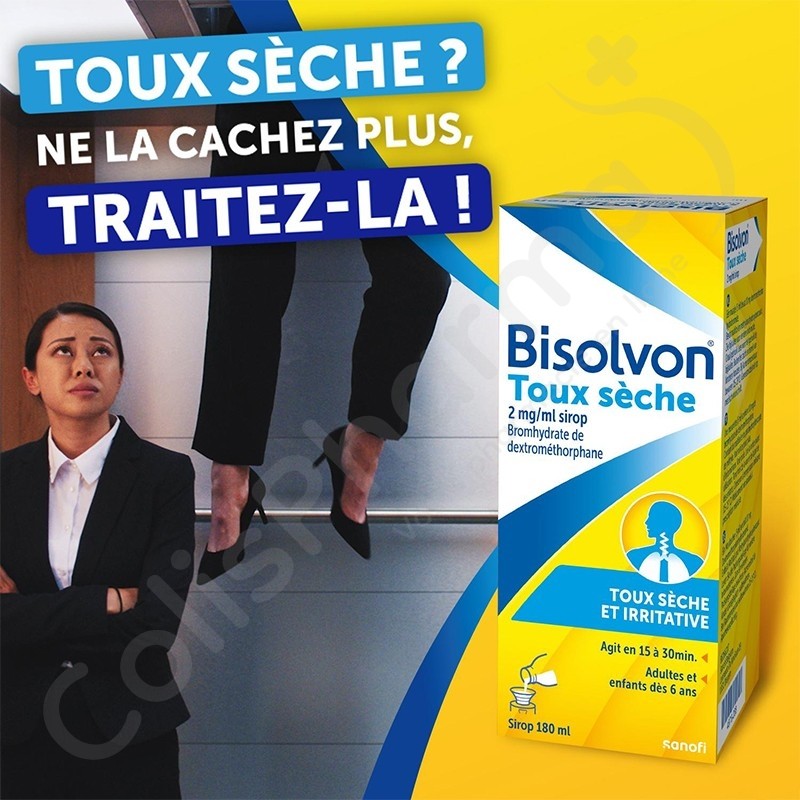 À noter : Si vous toussez avec la présence de glaires/mucus, alors vous souffrez plutôt d'une toux grasse, pour laquelle vous pouvez utiliser Bisolvon Toux Grasse - Sirop.
