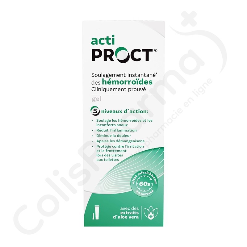 ActiProct Gel Tube réduit l'inconfort causé par les hémorroïdes, y compris pendant la grossesse et l'allaitement. Il est cliniquement prouvé qu'il soulage efficacement les démangeaisons, l'irritation, la douleur, l'inflammation et la sensation de brûlure. ActiProct Gel est à base d'ingrédients naturels et a un effet rafraîchissant immédiat qui apporte soulagement et confort. Il est prouvé qu'il réduit la douleur et l'inconfort pendant les visites aux toilettes.