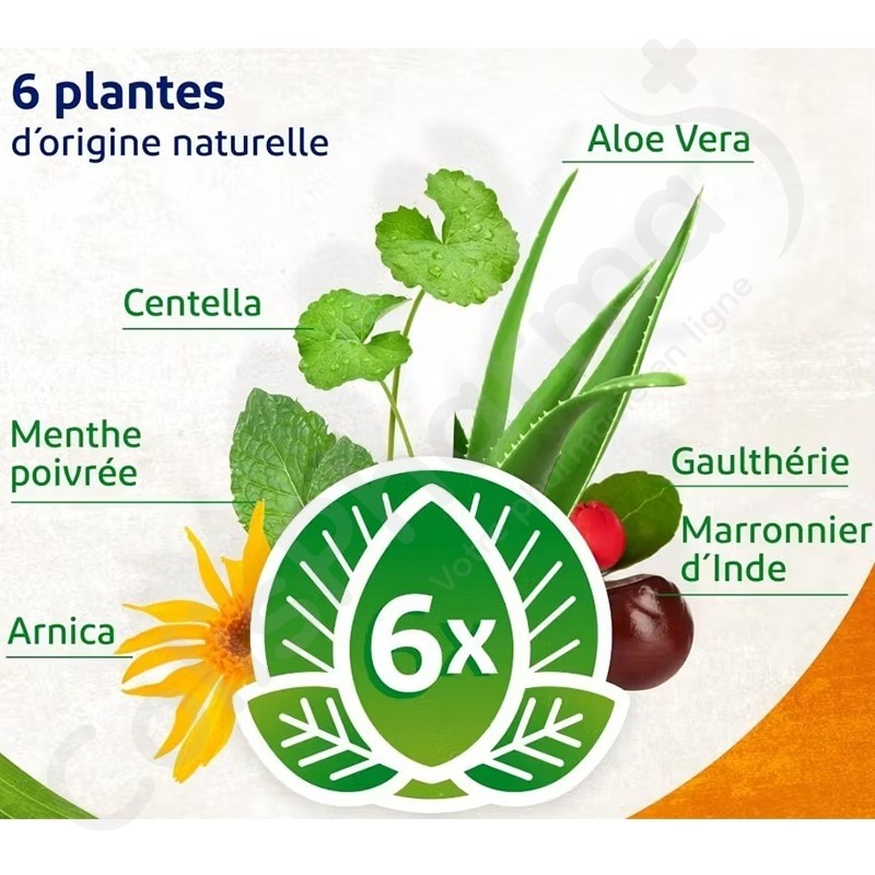 Gel de feuilles d'Aloe barbadensis, alcool dénaturé, glycérine, bétaïne, carraghénane, eau, xylitol, huile de mentha piperita, extrait de fleur d'arnica montana, extrait de graines d'aesculus hippocastanum, huile de feuilles de gaultheria procumbens, glucose, extrait de feuilles de centella asiatica, acide citrique, limonène, linalol. *Les ingrédients biologiques représentent 88,564% du total.