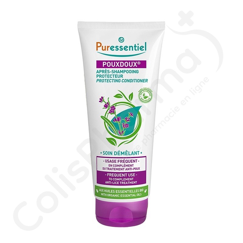 Puressentiel Anti-poux après shampooing permet un démêlage aisé des cheveux ainsi qu'une élimination des lentes, larves et poux morts.