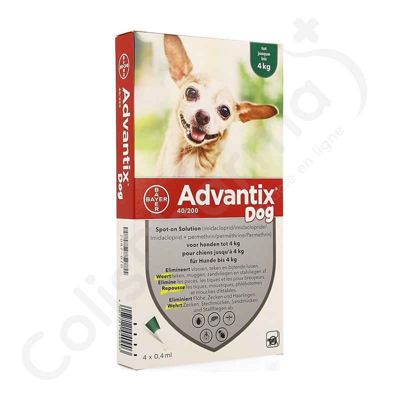 Aussi il est recommandé d'enlever les tiques présentes lors de l'application du traitement, afin d'éviter leur attachement et la prise de repas sanguin. Un seul traitement assure une activité répulsive (anti-gorgement) contre les phlébotomes, contre les moustiques et contre les mouches d'étables pendant quatre semaines.