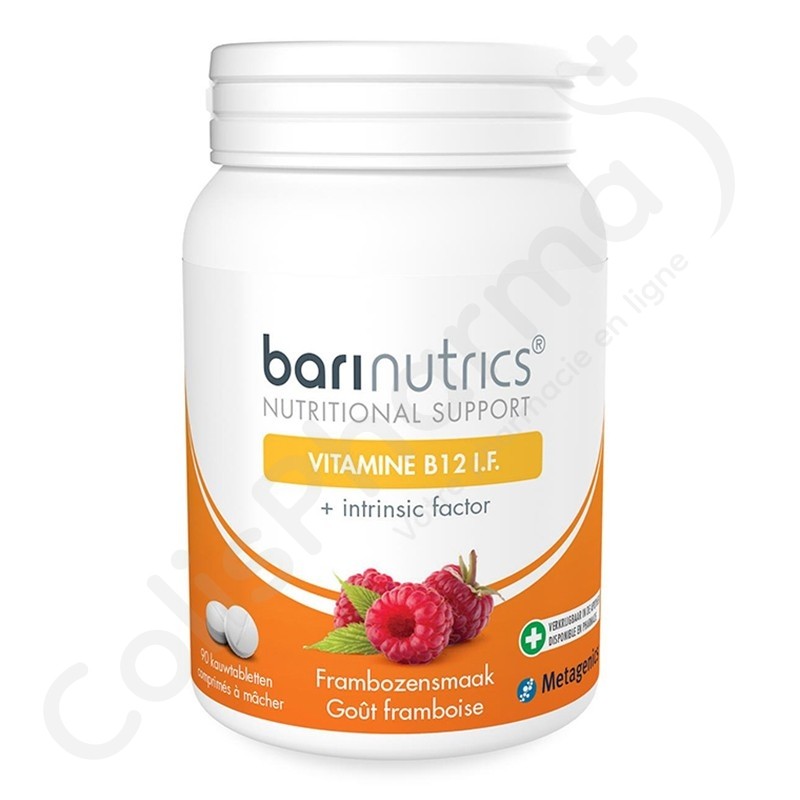 BariNutrics Vitamine B12 est un complément alimentaire au goût de framboise qui contient une forte dose de vitamine B12 par comprimé et comprend du facteur intrinsèque pour une absorption optimale de la vitamine B12.